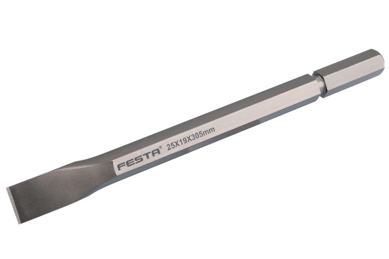 Sekáč plochý zámečnický z tvrzené oceli s ochrannou PVC rukojetí, délka 300 mm.