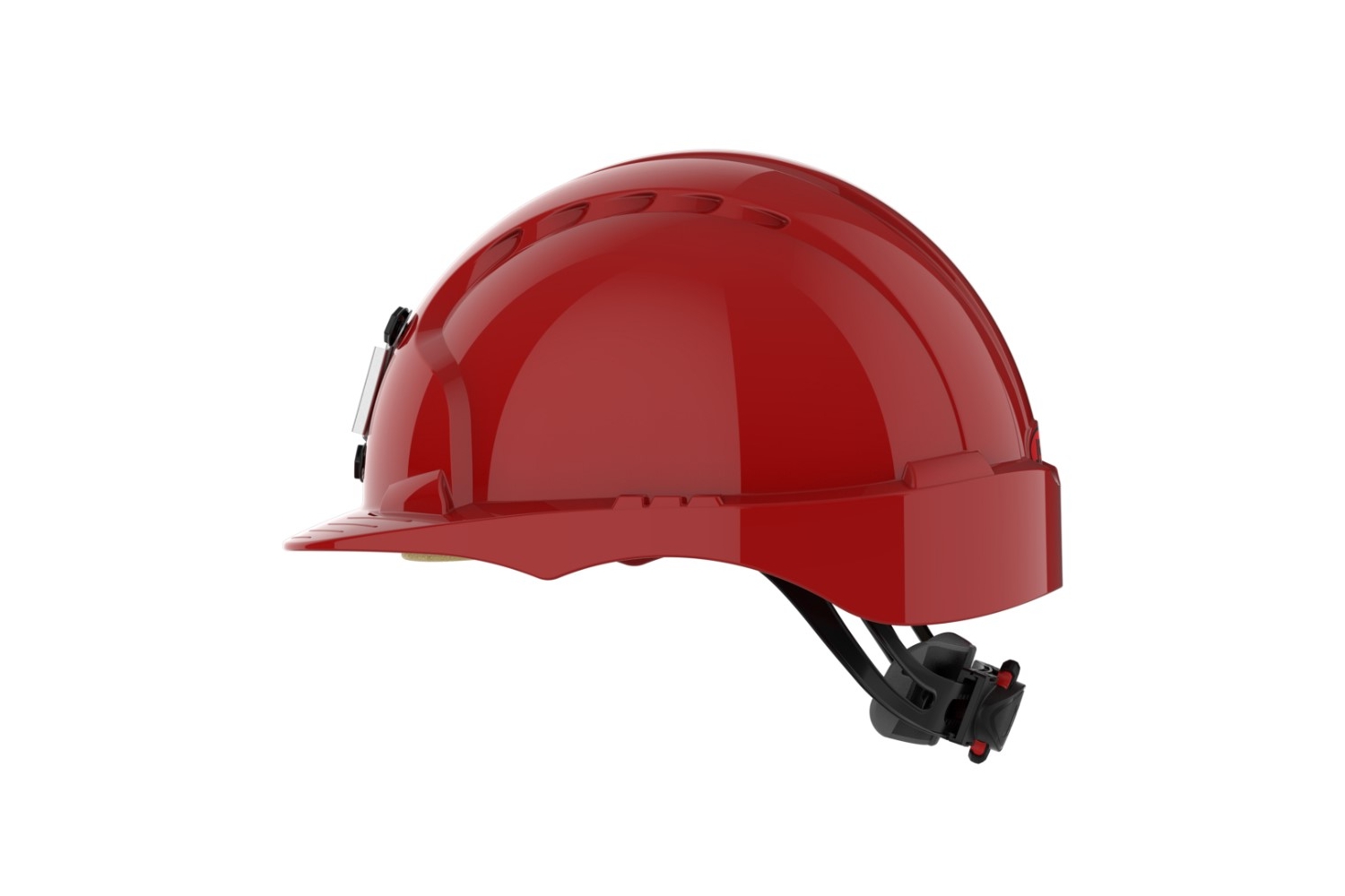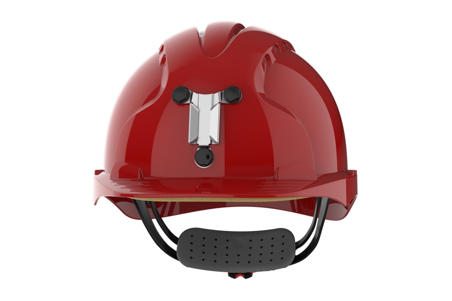 Přilba JSP EVO 3 s lampovým držákem červená + logo