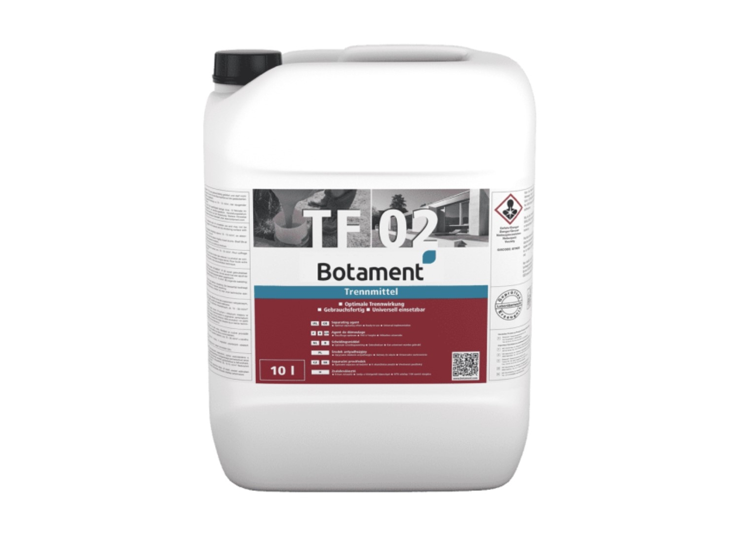 TF 02 je separační prostředek pro savé i nesavé bednění ze dřeva, plastů i kovu. Zabezpečuje optimální separaci bednění od vytvrzeného betonu, zároveň přispívá k ochraně a ošetření bednění. Separační prostředek nijak neovlivňuje tuhnutí ani vytvrzení betonu.
