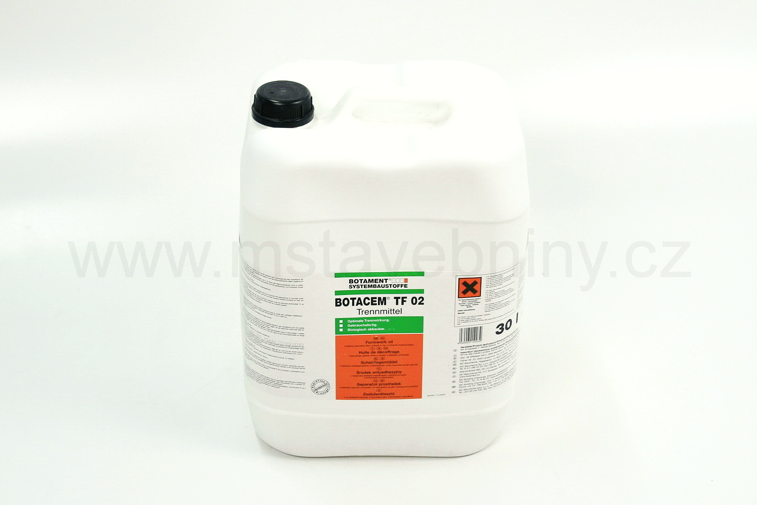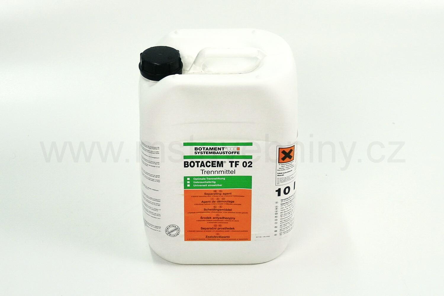 TF 02 je separační prostředek pro savé i nesavé bednění ze dřeva, plastů i kovu. Zabezpečuje optimální separaci bednění od vytvrzeného betonu, zároveň přispívá k ochraně a ošetření bednění. Separační prostředek nijak neovlivňuje tuhnutí ani vytvrzení betonu.